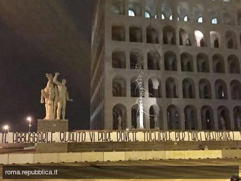 Barriere Olimpico, striscione ultrà Roma al Colosseo quadrato: "Dovete toglierle del tutto"